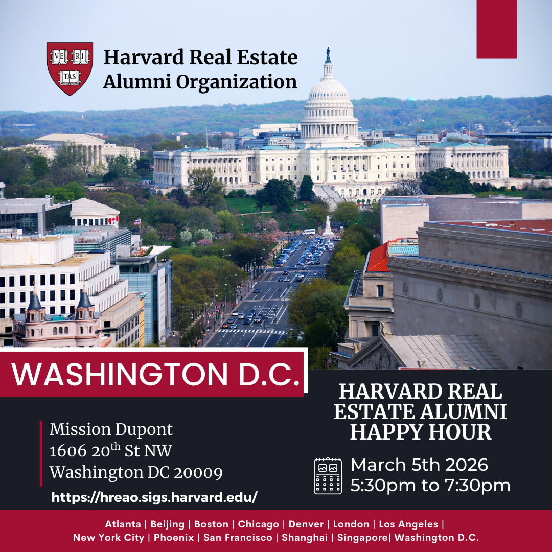We cordially invite you to join us for our First Thursday of the Quarter Happy Hour event with the Washington DC HREAO Chapter. As a valued member of the Harvard Real Estate Alumni Association, we organize global events in participating cities on the first Thursday of each Quarter, providing you with the opportunity to connect with fellow Harvard Real Estate Alumni even if you are in a different city during the scheduled event time and location.